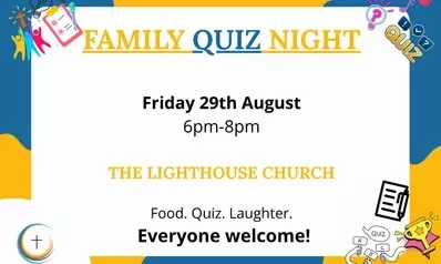 Join us for our Family quiz night at The Lighthouse Church at 6pm. Come along with a team or we'll find a friendly team for you to join in with. Lots of fun rounds for all ages including Music, Sport, General knowledge and interactive rounds too. Food included!