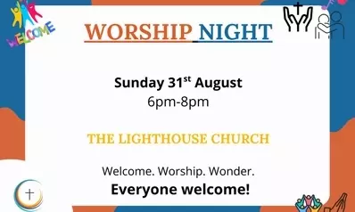Come along to The Lighthouse Church at 6.00pm for a night of worship, prayer, and testimony. All are welcome.